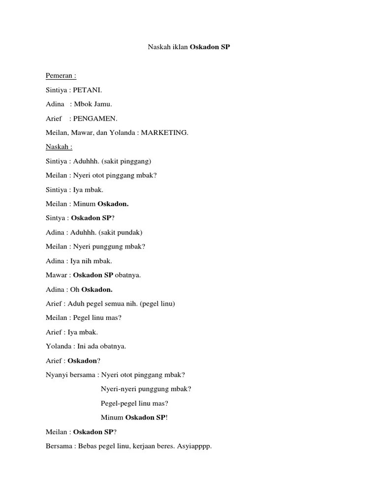 Mengaitkan merk produk dengan kelompok pengguna (konsumennya). intro c g verse f g c minum oskadon sp am f sayang sekarang kamu dimana am f janji jemput aku pulang kerja c g bosen aku nunggu lama. oskadon telah menggugat merek oskangin di pengadilan negeri jakarta pusat (pn jakpus). iklan paling keren mah iklan nya oskadon yang baru gan. Kata ketua majelis hakim marsudin nainggolan dalam sidang di pn jakpus, jalan gajah mada. oskadon oye oskadon ana ing facebook. oskadon adalah obat untuk meredakan sakit kepala dengan kandungan paracetamol dan caffeine anhydrous. Wajarlah jika itu jadi kehilangan terbesar bagi merek obat sakit kepala itu. View bbcode of kushalghosh789's post. #manteb, #mantebmanteb, #kimanteb, #cukomanteb, #mantebb, #kimante, #. Nah, itulah agama beserta profil lengkap dari dalang kondang ki manteb sudharsono. Facebook ngenehi uwong tenaga kanggo andum lan nggawe dunya luwih kebuka lan nyambungke. Memilih kata kunci harus bertepatan dengan tujuan dari iklan tersebut.