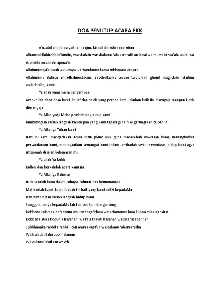 Bacaan do a penutup untuk acara formal resmi doa pembuka dan penutup acara yang bisa dipanjatkan doa penutup doa pembukaan acara cute766 doa . Ibrahim rahmat, s.kp., s.pd., m.kes. Sembari menadahkan tangan, marilah kita sejenak menundukkan kepala. Teks doa pembuka dan penutup dalam acara pembuka : Doa penutup dipandu oleh dr.